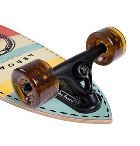 Paris V2 trucks, Arbor's own Mosh 65mm 78a wheels and ABEC7 bearings make a huge difference to the boardfeel compared to a cheaper complete, pick one up and you can immediately see where you money is going.