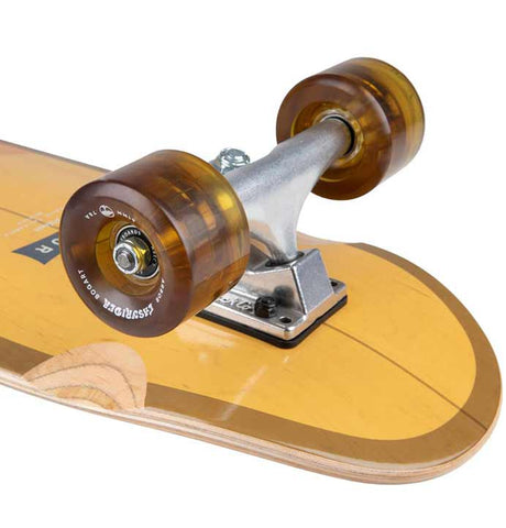 Finished off with a full spary on clear grip tape job to show off the delightful Bamboo top sheet and Arbor's own brand ABEC5 bearings. This is a functional and classy ride without a doubt!