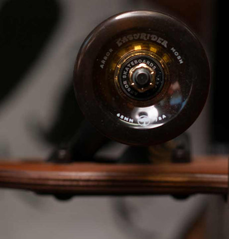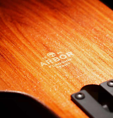 Finished off with a spray-on clear griptape job, minimal classy top graphic and Arbor's own ABEC5 bearings.