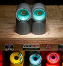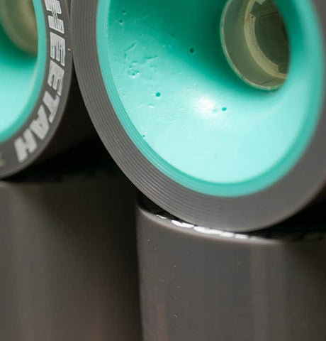 That support throughout the wheel means amazing rebound (the soft outer urethane isn't squishing so much it slows you down) and very even wear patterns as there is no unsupported soft urethane like any other wheel out there.