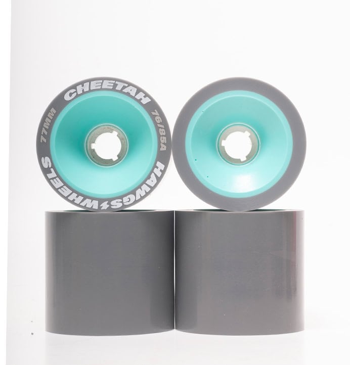 We've come a long way since the days of honking, chunking Centrax and Hawgs led the charge for a lot of that - in 2012 the Biggy Hawgs were (to my mind) the first 70mm wide wheel that actually slid nicely! They got even better (mmm that grey 76A) when they added a bigger core, and these Cheetah Hawgs - whilst they've been worked on for 2 years - are actually the result of over a decade of downhill shenanigans serious research and development.