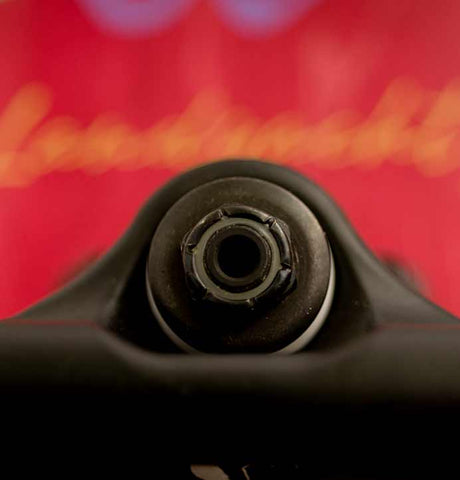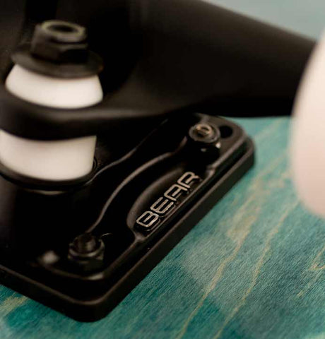 • You do have a bit of adjustment in the truck's kingpin nut, but we would suggest that if you have more than two threads showing then it's time to go to a harder bushing.