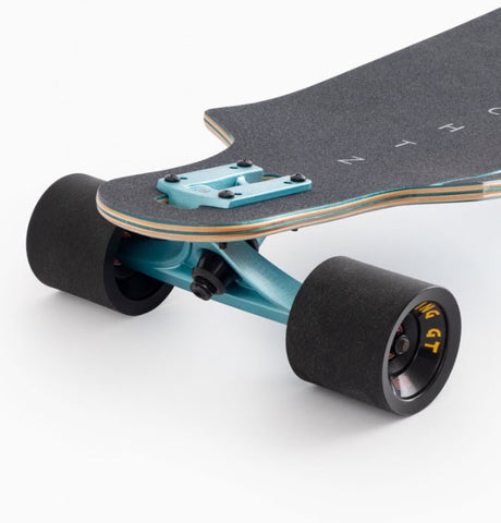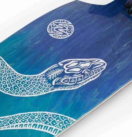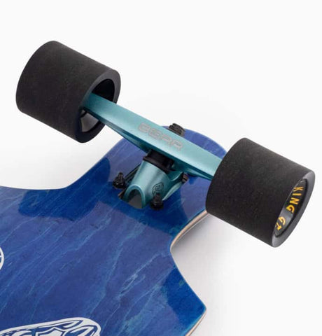 Drop-through mounting gets you close to the floor whilst the crazy rocker increases the angle of your trucks making for a more reactive turn that you can really dig into. Imagine you're swinging in a hammock below your trucks rather than sitting on top of them. Then imagine a wide, fresh road beneath you... You can really dig into your carves on this thing!