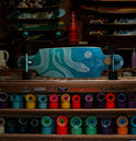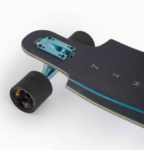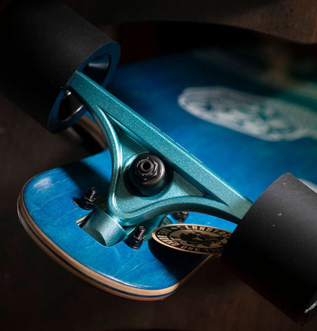 Worth mentioning - juicy Bear Trucks Gen 6 Grizzlies in a teal finish come on this board and they aren't available to buy like this anywhere else! Talk about attention to detail.