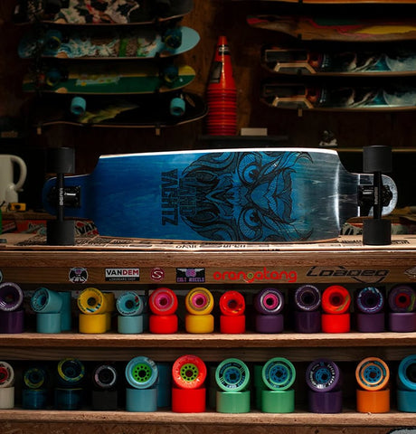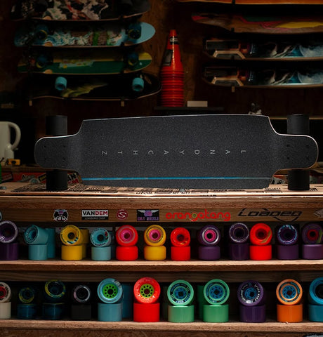 More than 20 years of Landyachtz experience with longboards comes together in this one. Their time-tested Canadian maple construction will take any amount of abuse you can throw at it - and don't be afraid to! It's common that this thing will carve so hard that the bottom of the board will hit the floor. It's designed that way. Apparently, they've even given it a few layers of paint so that as it scrapes, you get some different colours showing through. I cannot confirm that however, as it didn't feel right to start smashing up the super fresh new board when it arrived in the shop...