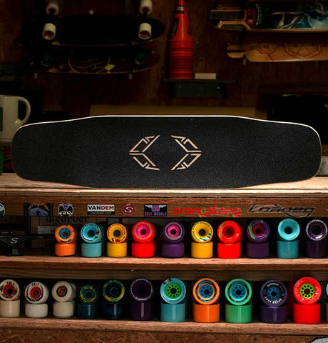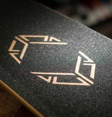 Aerospace Construction: A quantum leap in our Tesseract deck development. Six plies of maple and triaxial fiberglass skins create a lighter, torsionally stiff deck with explosive pop. Bio-based epoxy by Entropy Resins makes it durable and earth friendly. Machined wheel wells provide extra clearance without sacrificing strength. This construction invites you to push limits. You got this, now send it!