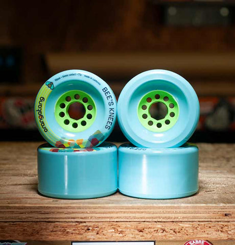 Like all Orangatang wheels, the Bees Knees are poured from their "Happy" urethane - which is great for what these are made for: fast, enough grip and high-rebound.
