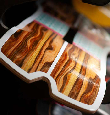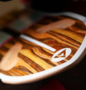 Classic Pantheon - a 6 ply maple core sandwiched between layers of triaxial fibreglass with an applewood veneer on the bottom for the vibes. For a surfy appearance, according to their website. Perhaps they have a lot of applewood surfboards in Colorado?