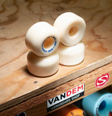 This is the 58mm version - quite big for a pure street wheel, but then, we're a cruiser and longboard specialist so it's a rare day we skate pure street. We tend to enjoy the skate across town to the spot as much as we enjoy the spot itself. And that's where a little extra diameter comes into play. They'll cruise, they'll kickflip and your cartilage will thank you for that bit of a softer ride.