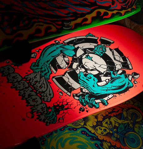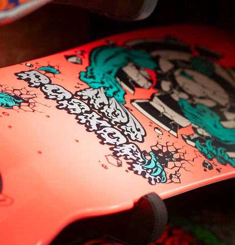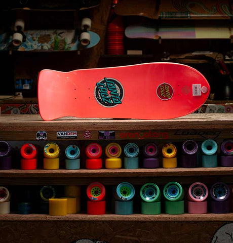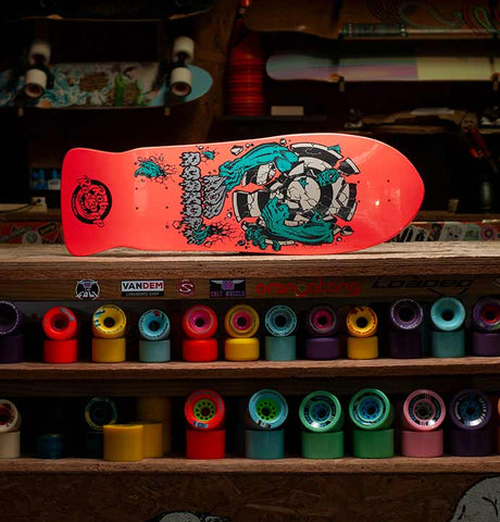 A proper reissue - exactly as it was in the late 80s when Rob Roskopp rode into town. Length, width, concave, graphic, the lot. Turns out Rob quite liked riding bikes and spends his time running Santa Cruz Bicycles. He and his boards are like powerful forces of nature. Stand on one and feel it!